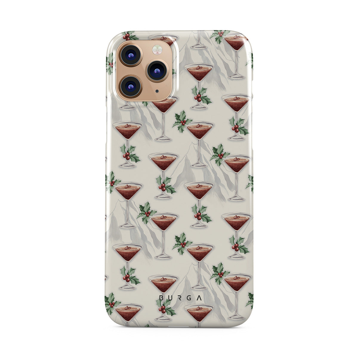 Kenmerken van dit design: cocktailglazen, martini's, hulstbladeren
