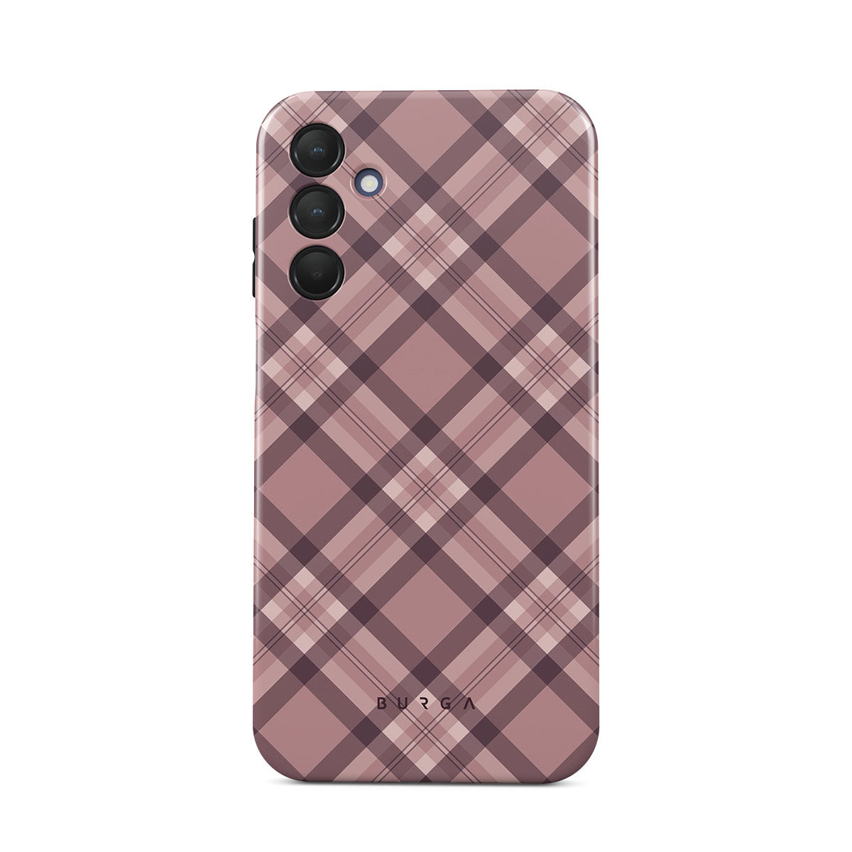 Kenmerken van dit design: roze en grijs ruitjespatroon, geruit
