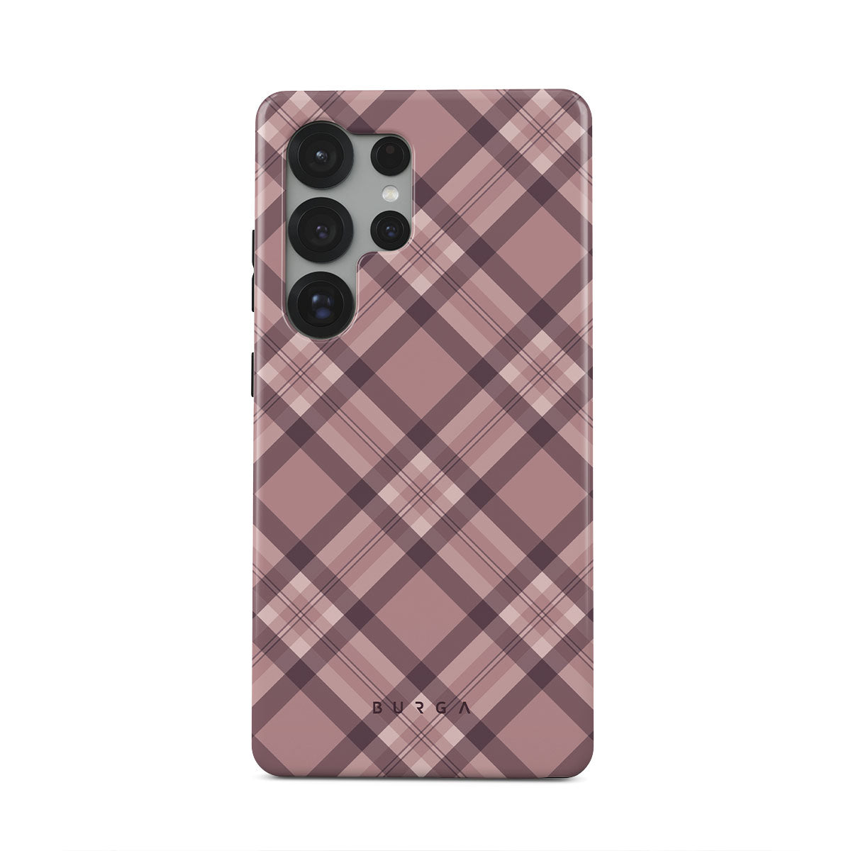 Kenmerken van dit design: roze en grijs ruitjespatroon, geruit