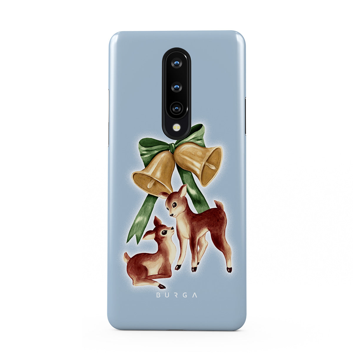 Kenmerken van dit design: vintage rendier, kerstklokken, gouden klokken, retro rendierillustratie, babyhert, lichtblauwe achtergrond