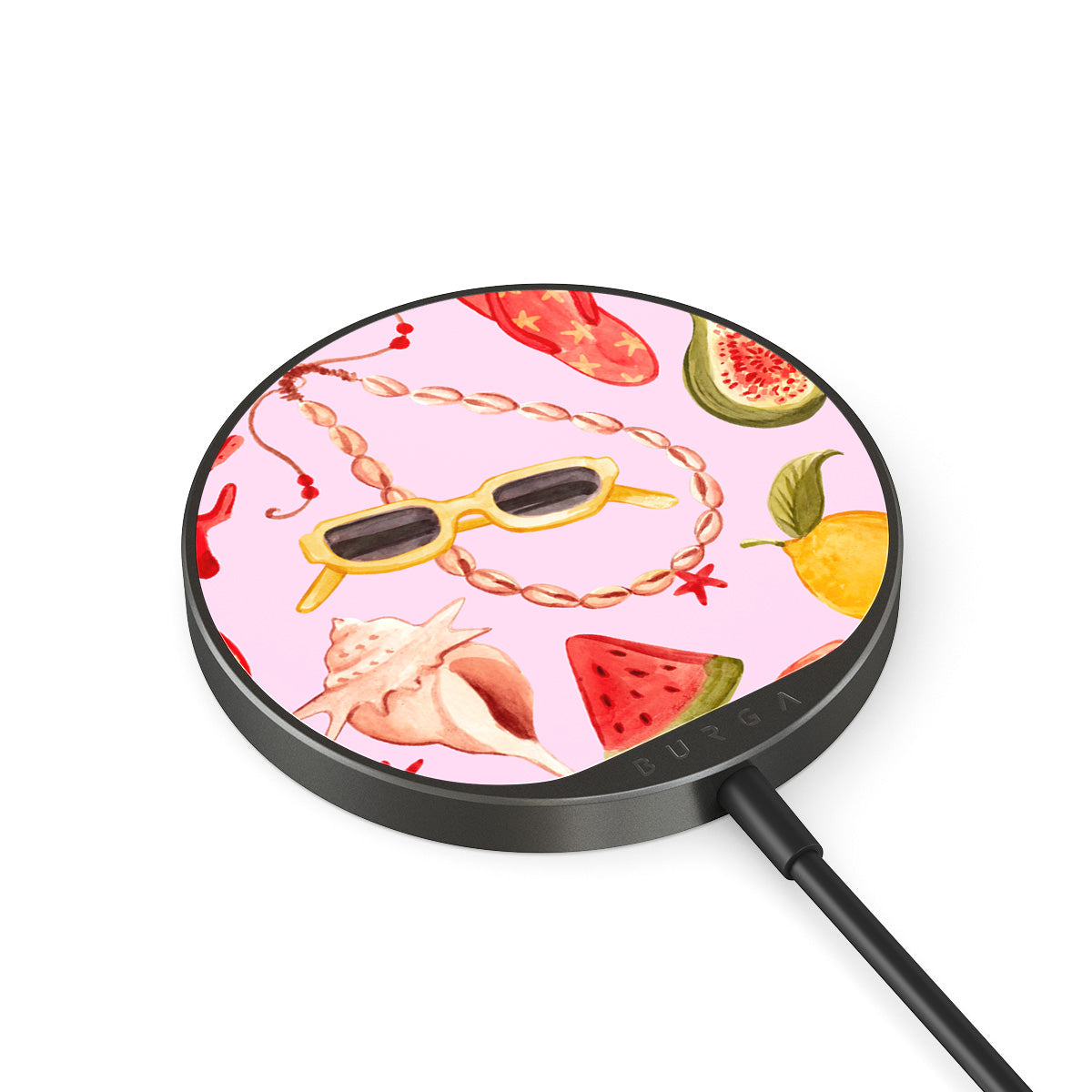 Met de geïntegreerde kabel van 1,5 m kun je eenvoudig opladen, waar je ook bent: op kantoor, op de bank of in de lounge op het vliegveld. Bovendien kies je dankzij de glazen achterkant van BURGA uit 500+ prints, dus je oplader ziet er altijd even goed uit als je hoesje.