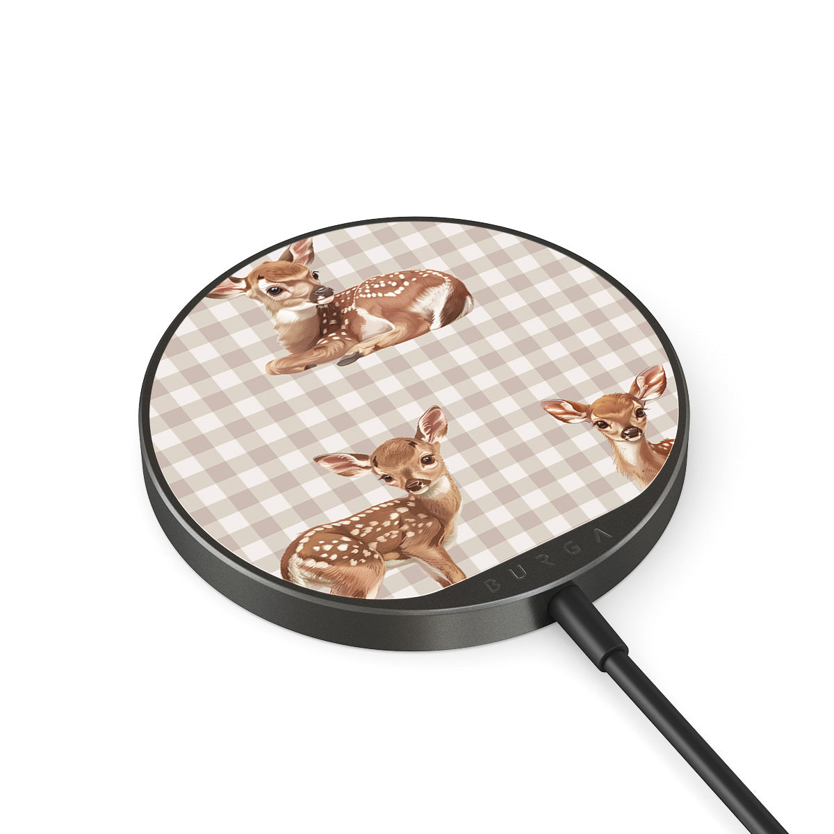 Met de geïntegreerde kabel van 1,5 m kun je eenvoudig opladen, waar je ook bent: op kantoor, op de bank of in de lounge op het vliegveld. Bovendien kies je dankzij de glazen achterkant van BURGA uit 500+ prints, dus je oplader ziet er altijd even goed uit als je hoesje.