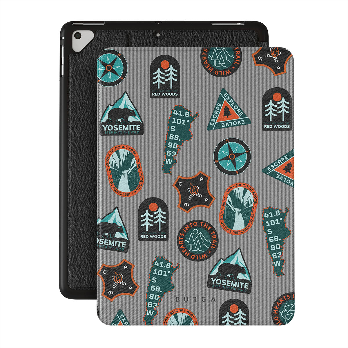 Kenmerken van dit design: outdoorpatches, natuur, bergen, avontuur, vintage, badges