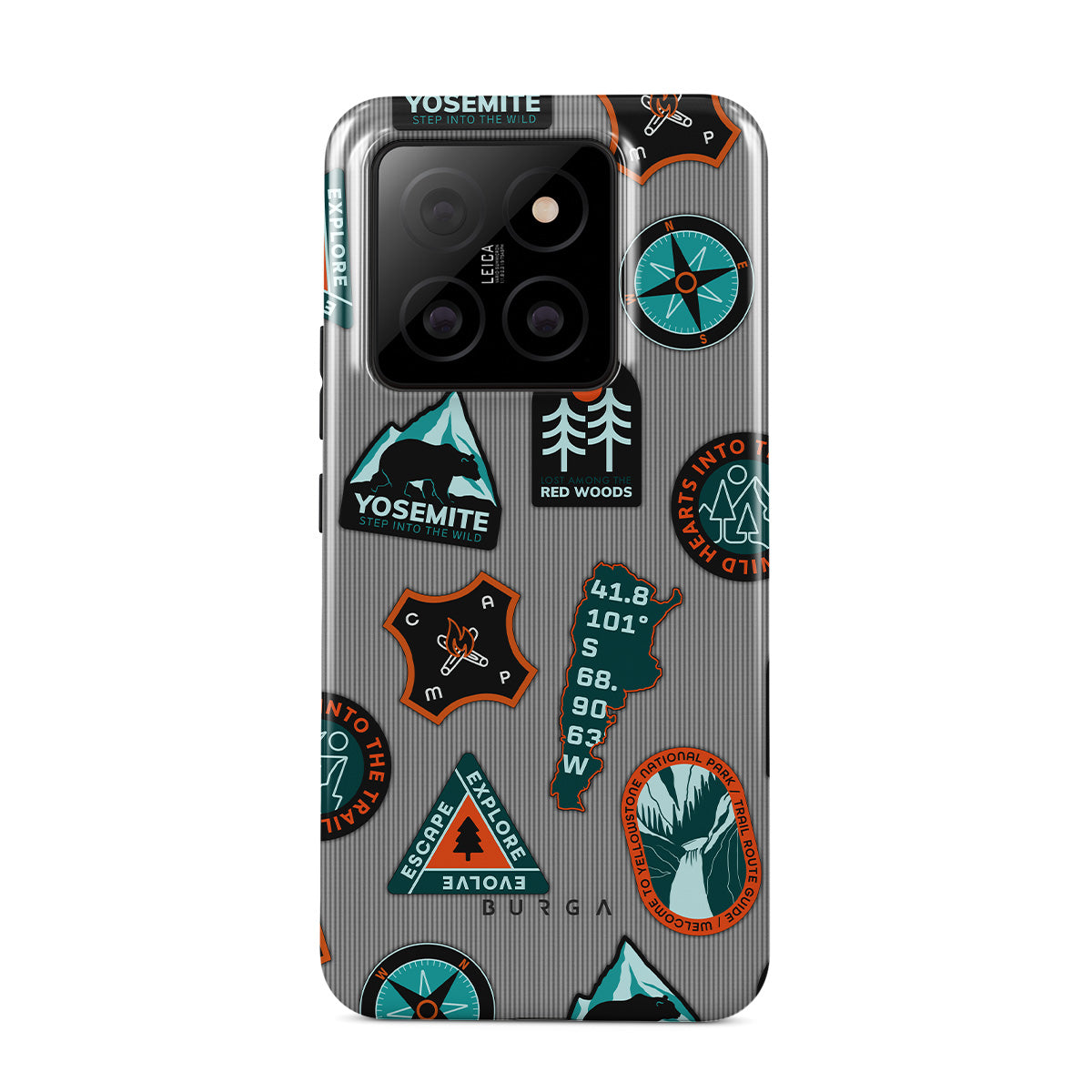 Kenmerken van dit design: outdoorpatches, natuur, bergen, avontuur, vintage, badges