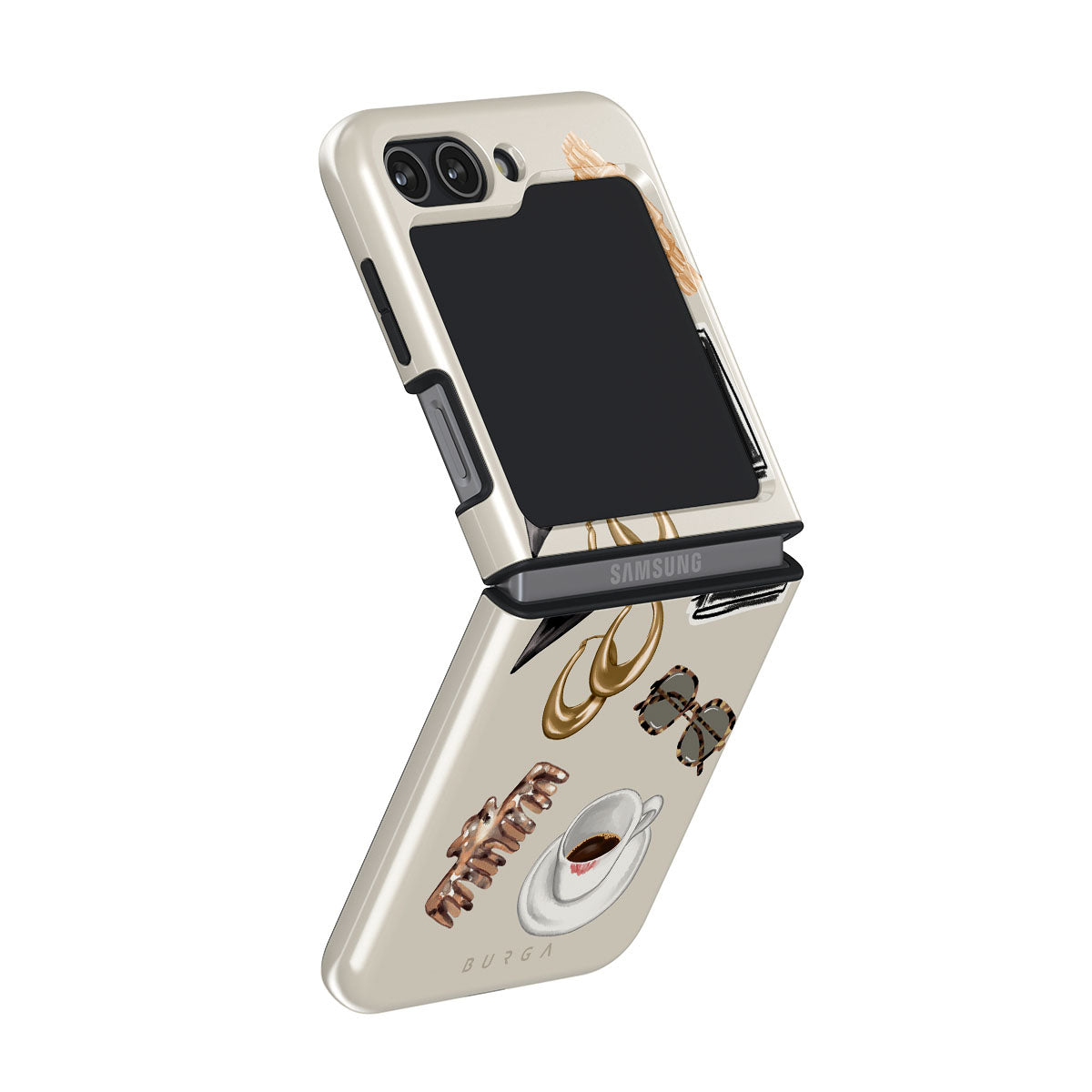 Het is de ultieme conversatiestarter! Zeg vaarwel tegen saaie patronen en zeg hallo tegen onze prachtig ontworpen, waanzinnig beschermende Samsung Galaxy Z Flip 5 telefoonhoesjes. Ze bieden niet alleen schokbestendige bescherming, maar onze slanke, soft-touch hard shell telefoonhoesjes zullen hoofden doen omdraaien. Geen omvangrijke saaie telefoonhoesjes meer, maar volledige bescherming en een stijl die JOU schreeuwt. Ben je klaar om in het middelpunt van de belangstelling te staan?