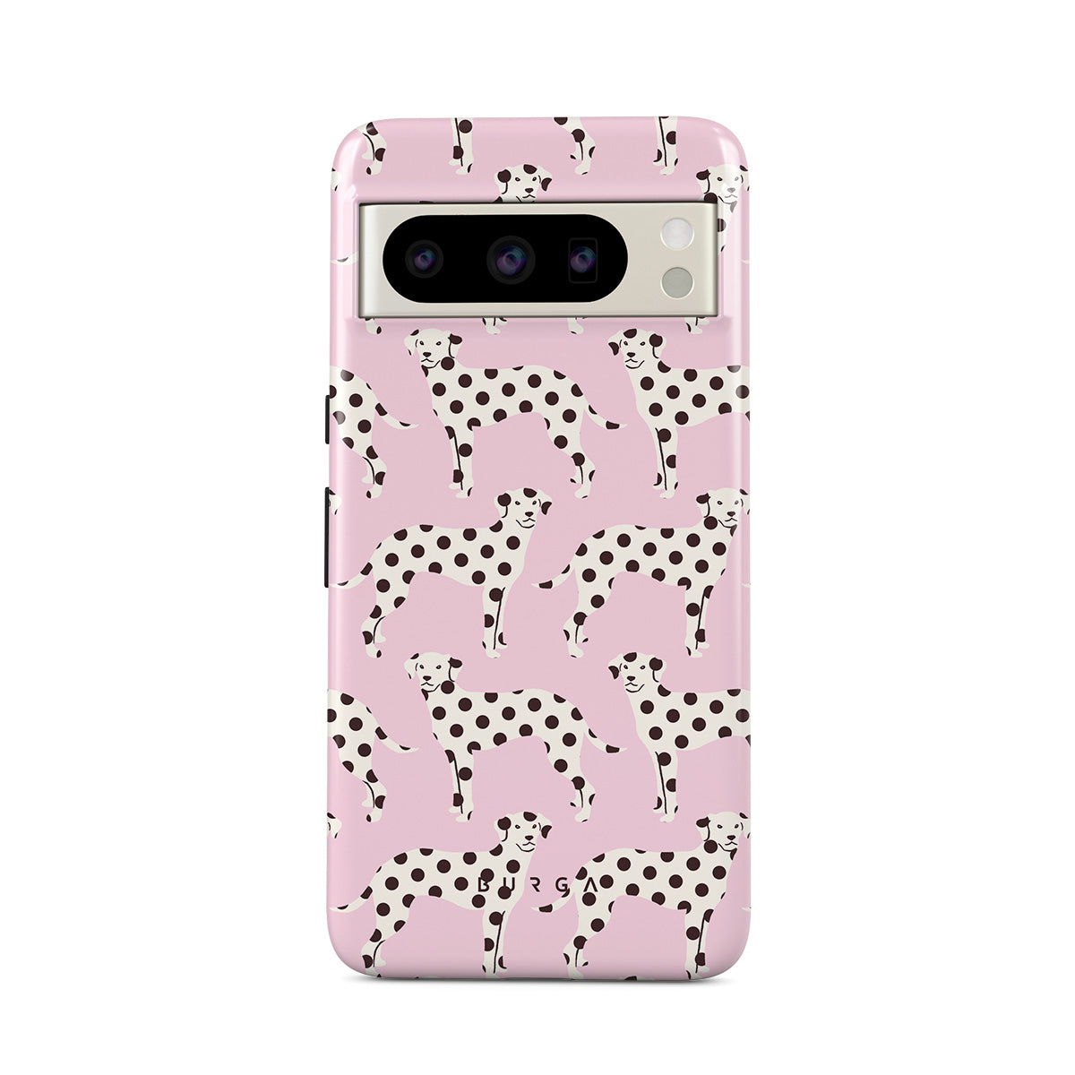 Kenmerken van dit design: dalmatiërs op een babyroze achtergrond, honden.