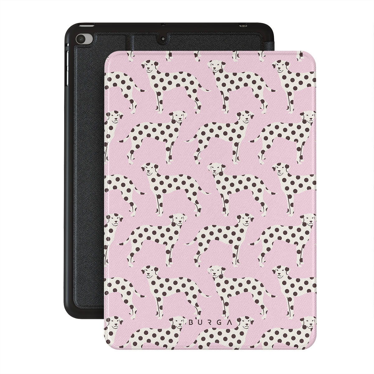 Kenmerken van dit design: dalmatiërs op een babyroze achtergrond, honden.