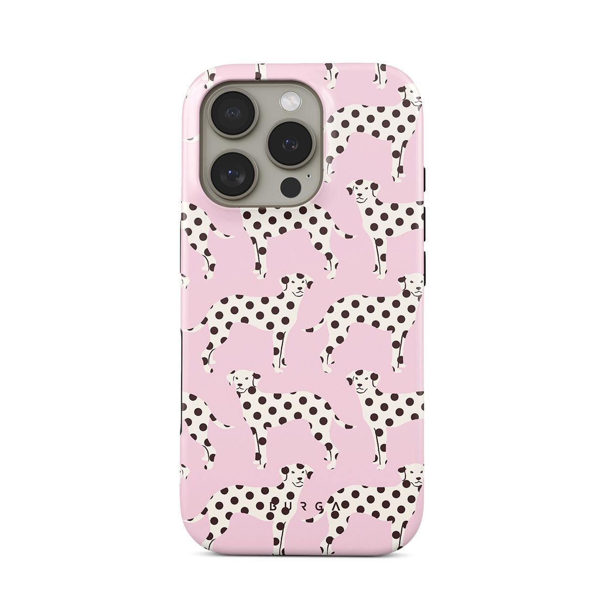 Kenmerken van dit design: dalmatiërs op een babyroze achtergrond, honden.