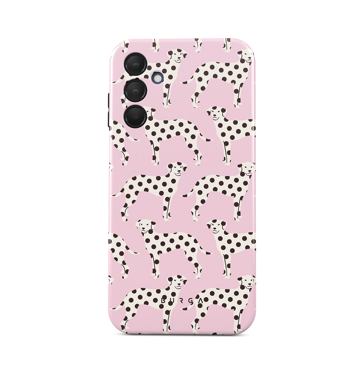 Kenmerken van dit design: dalmatiërs op een babyroze achtergrond, honden.