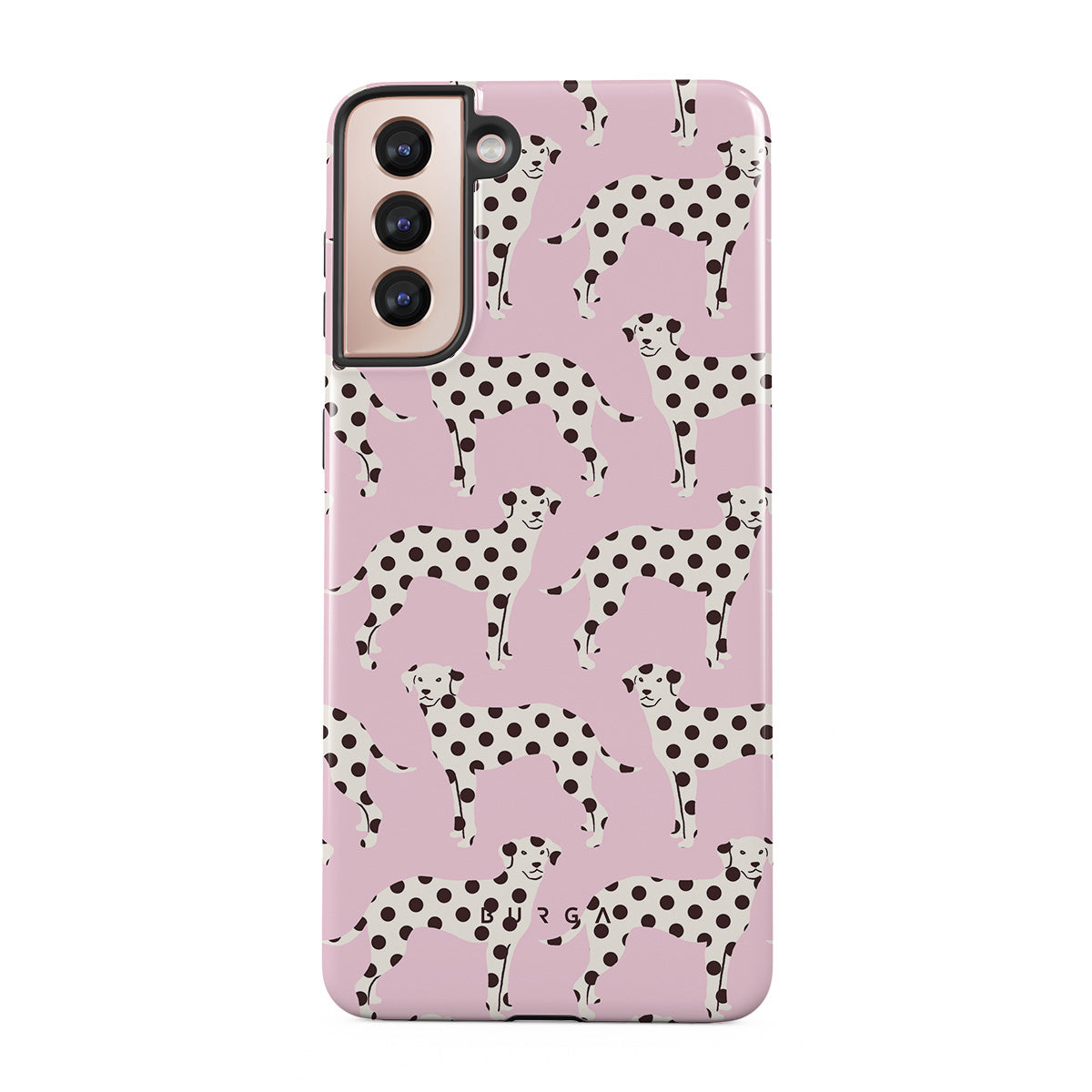 Kenmerken van dit design: dalmatiërs op een babyroze achtergrond, honden.