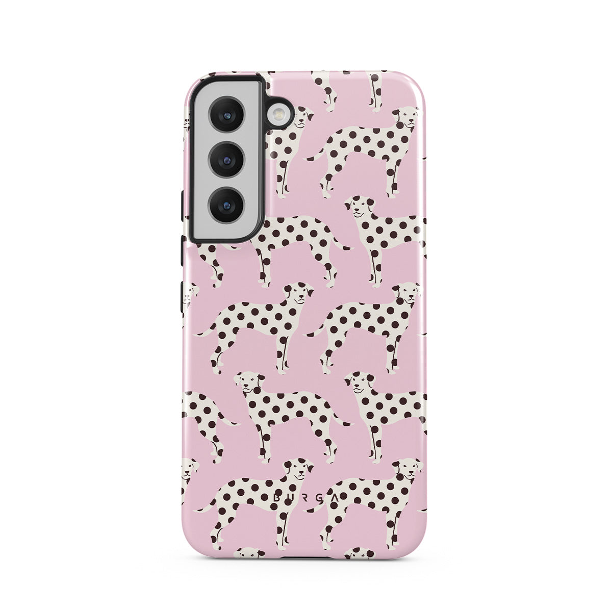 Kenmerken van dit design: dalmatiërs op een babyroze achtergrond, honden.