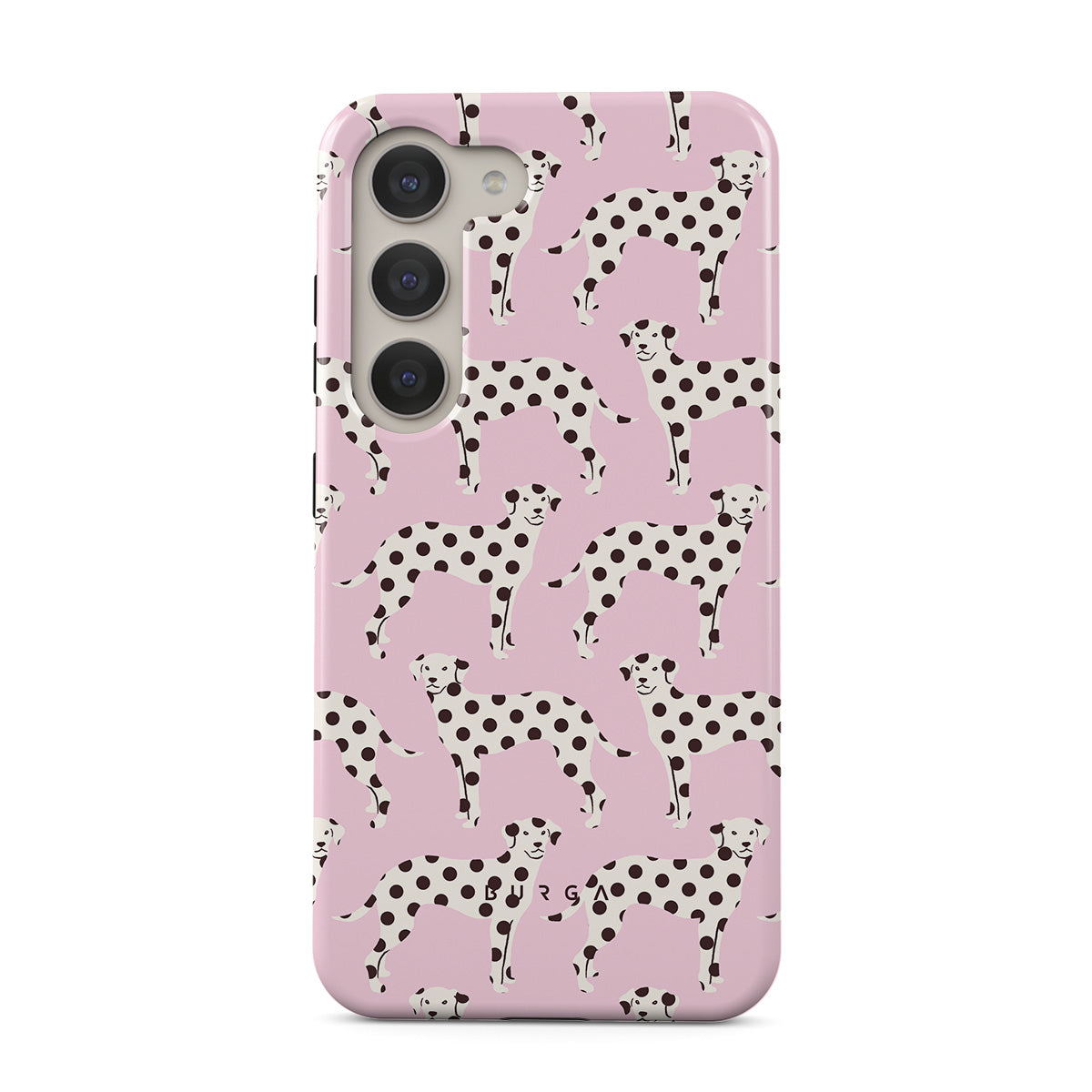 Kenmerken van dit design: dalmatiërs op een babyroze achtergrond, honden.