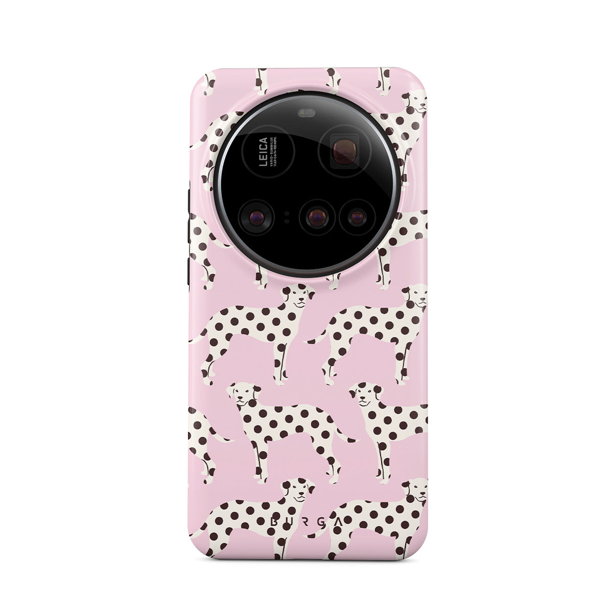 Kenmerken van dit design: dalmatiërs op een babyroze achtergrond, honden.