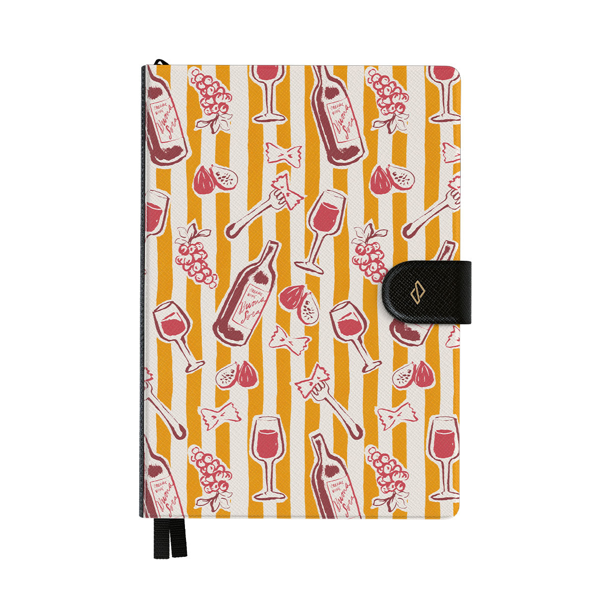Uitgevoerd in strak veganistisch saffiano leer en vastgezet met een stijlvolle magnetische sluiting, is het stevig genoeg om koffievlekken en kleine ongelukjes te weerstaan.