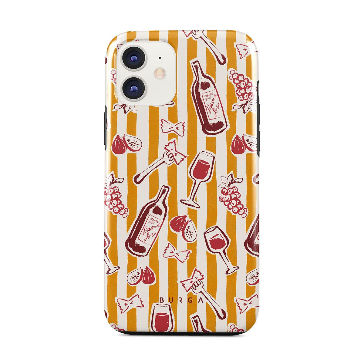 Kenmerken van dit design: fruit, vijgen, druiven, vorken, pasta, wijn, glas, strepen.