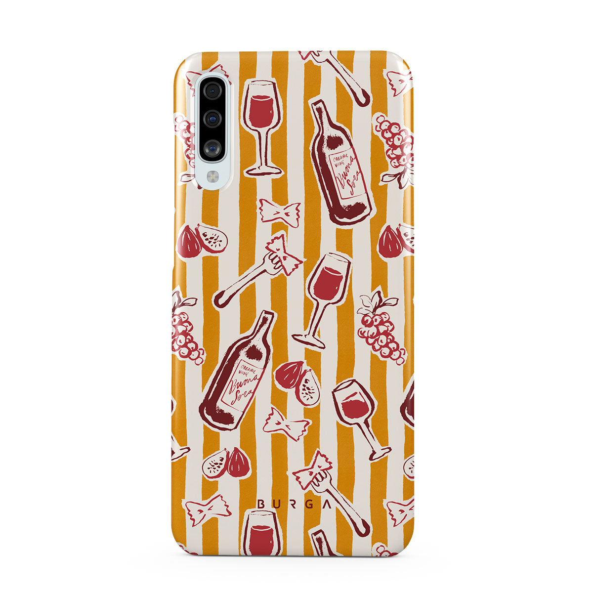 Kenmerken van dit design: fruit, vijgen, druiven, vorken, pasta, wijn, glas, strepen.