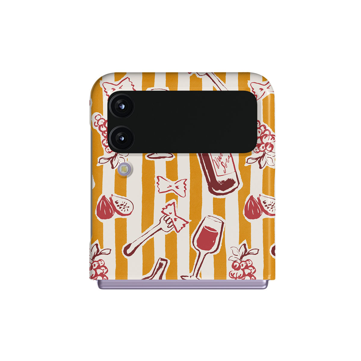 Kenmerken van dit design: fruit, vijgen, druiven, vorken, pasta, wijn, glas, strepen.
