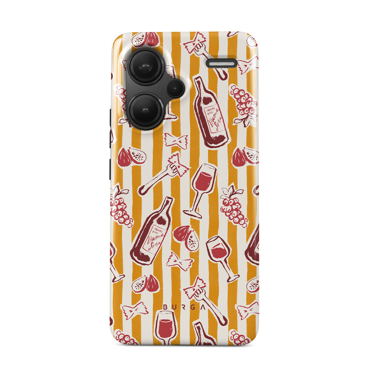 Kenmerken van dit design: fruit, vijgen, druiven, vorken, pasta, wijn, glas, strepen.