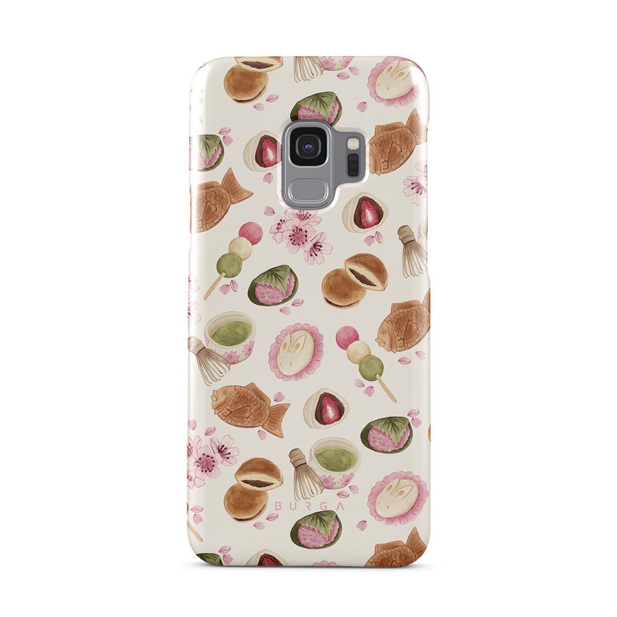 Kenmerken van dit design: matcha-desserts, Japans snoep, cafélekkernijen, pastel voedselillustraties, kersenbloesems, mochi