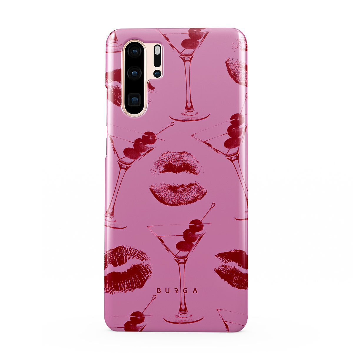 Kenmerken van dit ontwerp: rode lippen, kussen, cocktailglazen, martini's.