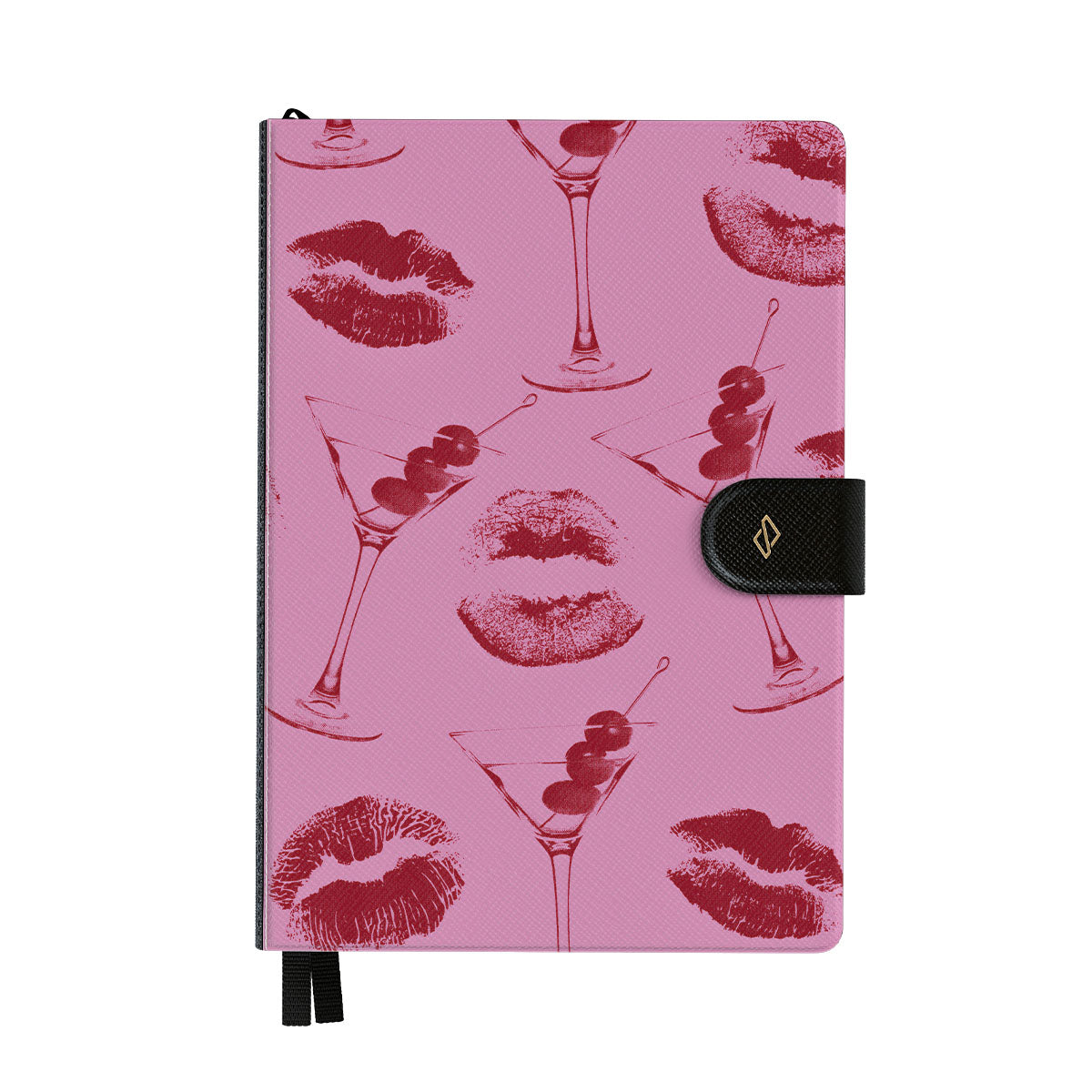 Uitgevoerd in strak veganistisch saffiano leer en vastgezet met een stijlvolle magnetische sluiting, is het stevig genoeg om koffievlekken en kleine ongelukjes te weerstaan.