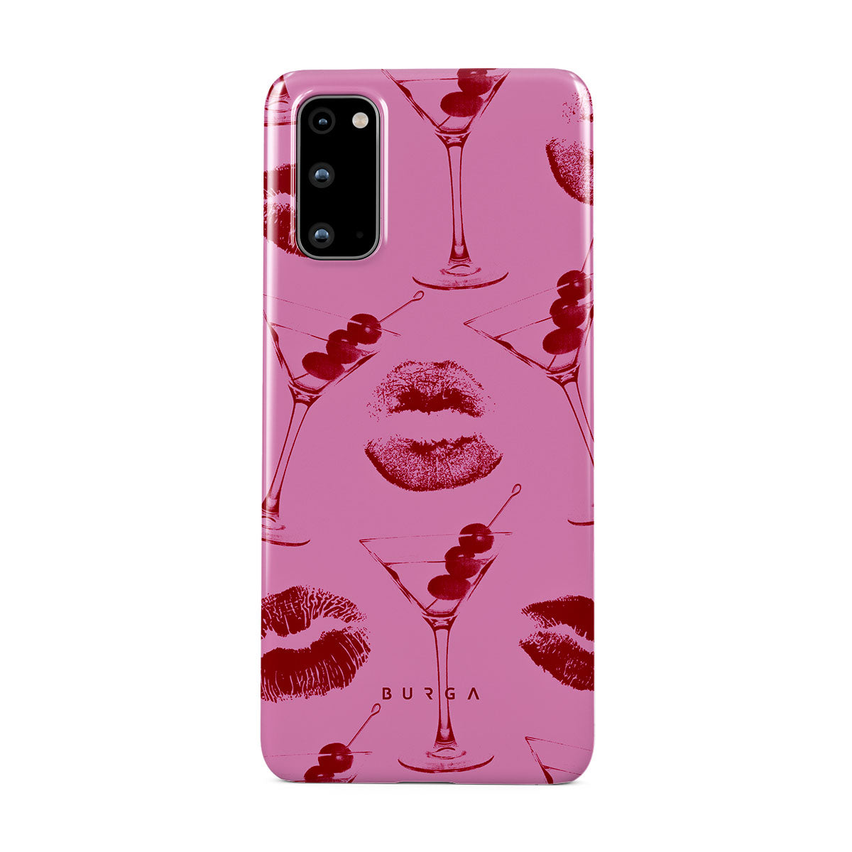 Kenmerken van dit ontwerp: rode lippen, kussen, cocktailglazen, martini's.