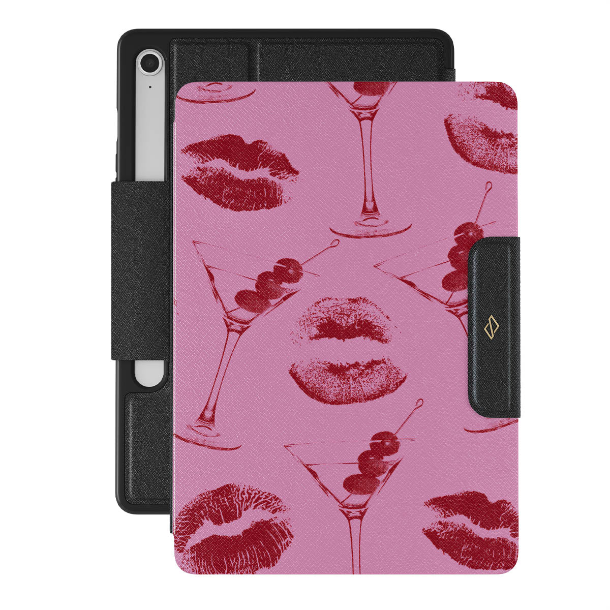 Kenmerken van dit ontwerp: rode lippen, kussen, cocktailglazen, martini's.