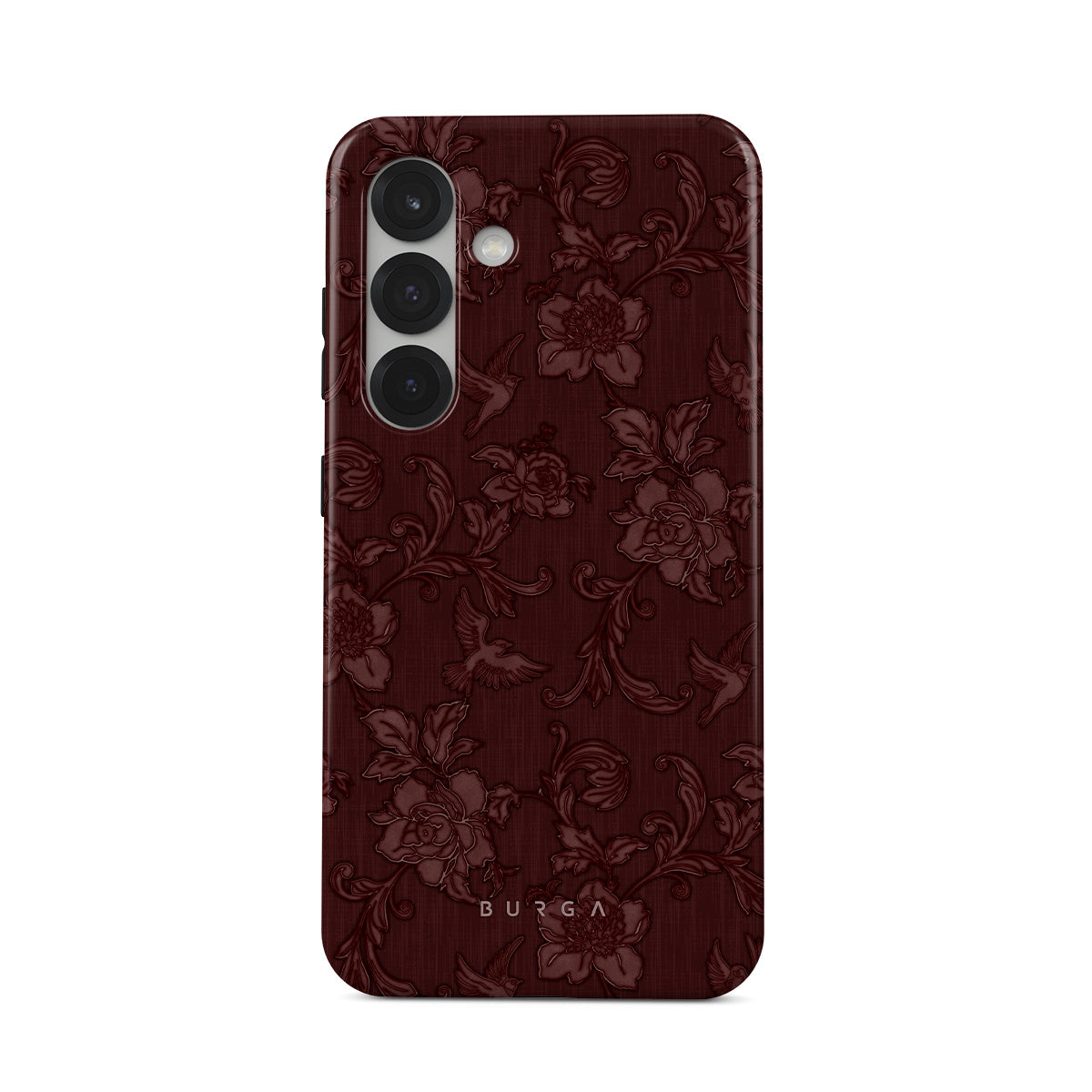 Kenmerken van dit design: rode bloemen, rood bloemmotief, vintage rozen, structuurpatroon