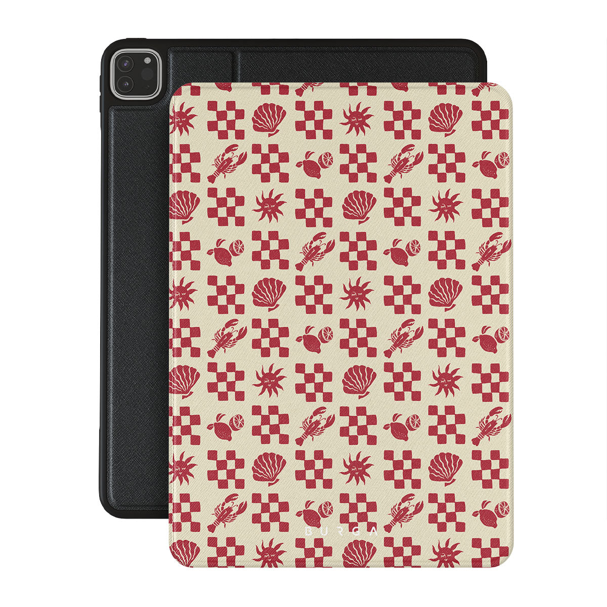 Kenmerken van dit design: Rood geruite patronen, schelpen, kreeft, Italiaanse motieven.
