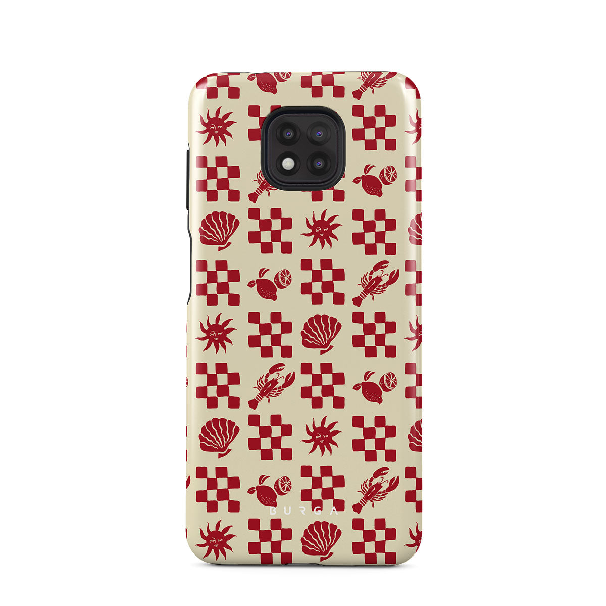 Kenmerken van dit design: Rood geruite patronen, schelpen, kreeft, Italiaanse motieven.