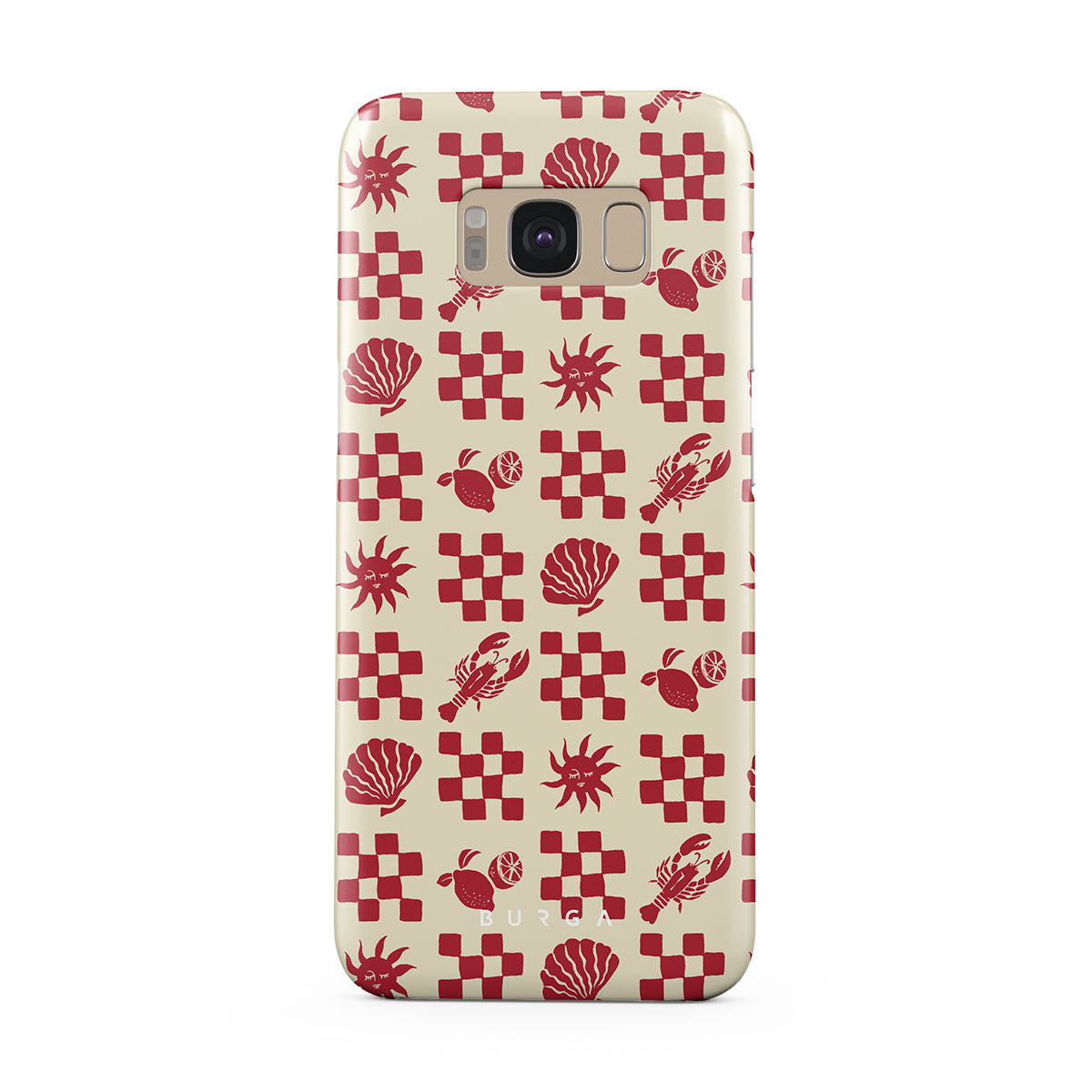 Kenmerken van dit design: Rood geruite patronen, schelpen, kreeft, Italiaanse motieven.