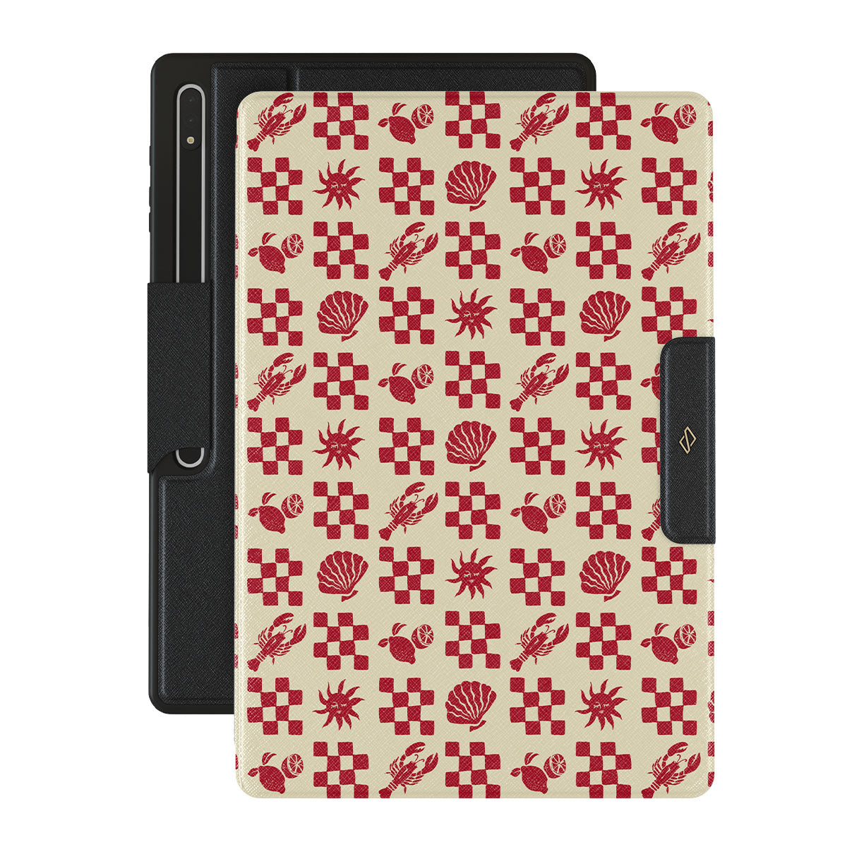 Kenmerken van dit design: Rood geruite patronen, schelpen, kreeft, Italiaanse motieven.
