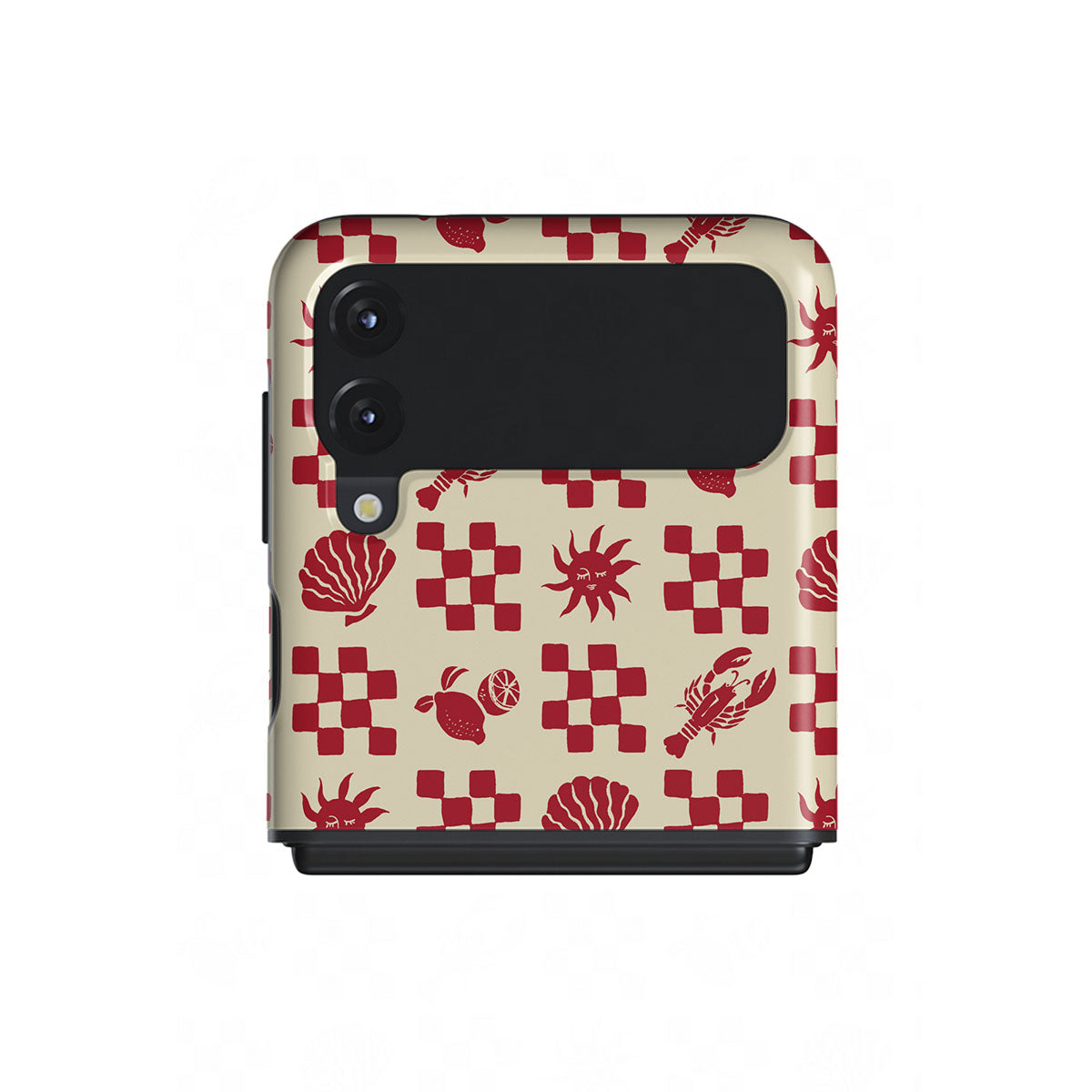 Kenmerken van dit design: Rood geruite patronen, schelpen, kreeft, Italiaanse motieven.