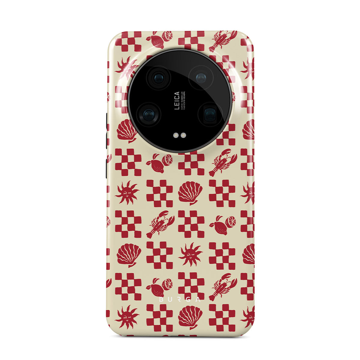 Kenmerken van dit design: Rood geruite patronen, schelpen, kreeft, Italiaanse motieven.