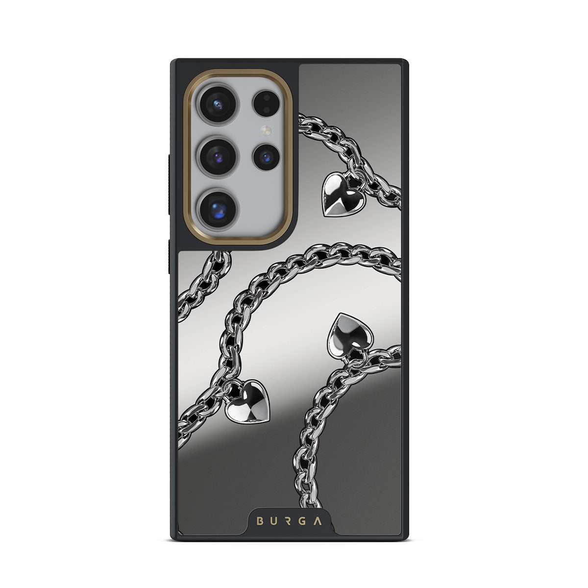 Kenmerken van dit design: kettingen, harten, zilver, metalen details, spiegel