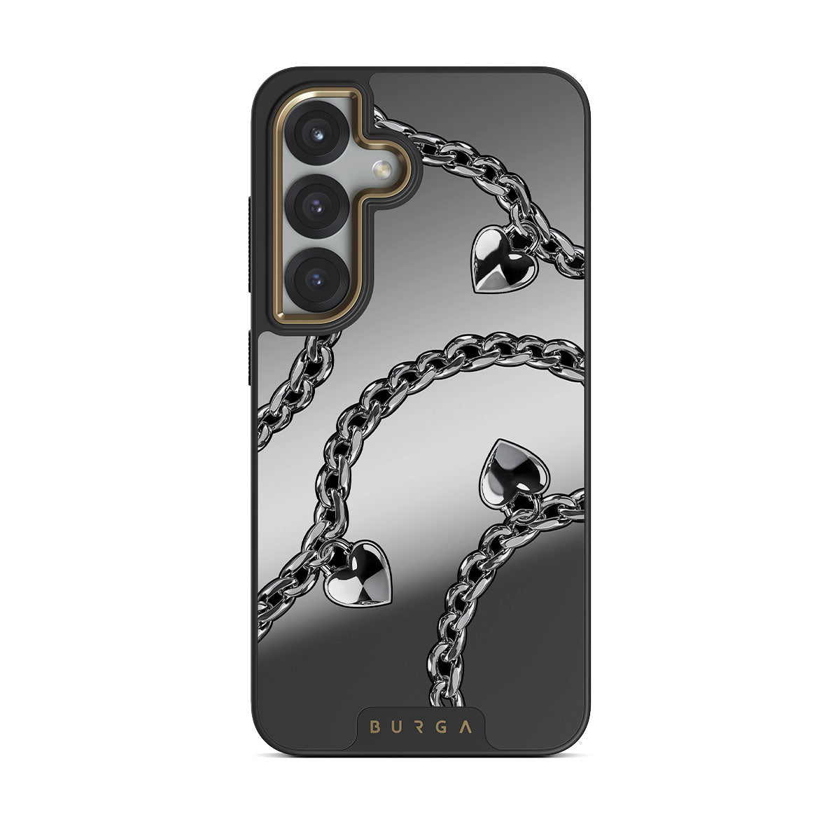 Kenmerken van dit design: kettingen, harten, zilver, metalen details, spiegel