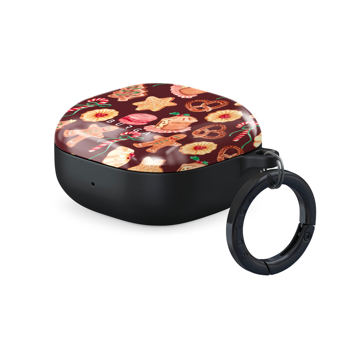 Kenmerken van dit design: kerstkoekjes, peperkoekenmannen, zuurstokken, pepermuntjes, feestelijke zoetigheden, bordeauxrode achtergrond