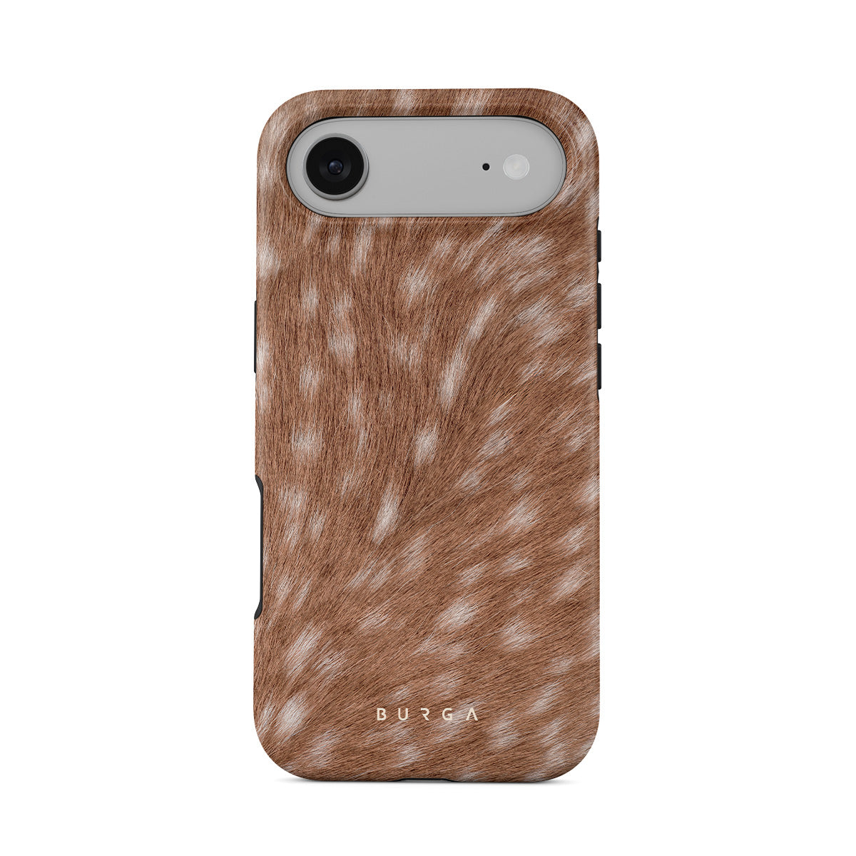 Kenmerken van dit design: bontachtig patroon, aardetinten, natuurlijk bontpatroon, rustiek patroon, dierenprint, landelijke stijl, hert, hinde, kalf.