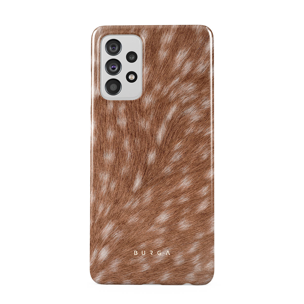 Kenmerken van dit design: bontachtig patroon, aardetinten, natuurlijk bontpatroon, rustiek patroon, dierenprint, landelijke stijl, hert, hinde, kalf.