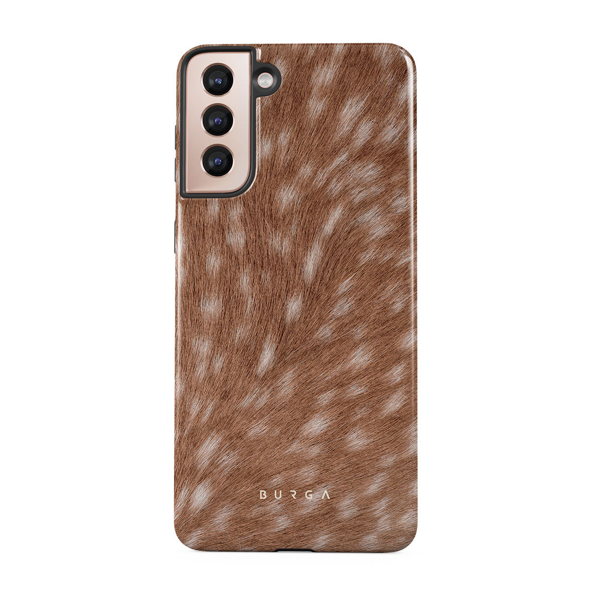 Kenmerken van dit design: bontachtig patroon, aardetinten, natuurlijk bontpatroon, rustiek patroon, dierenprint, landelijke stijl, hert, hinde, kalf.