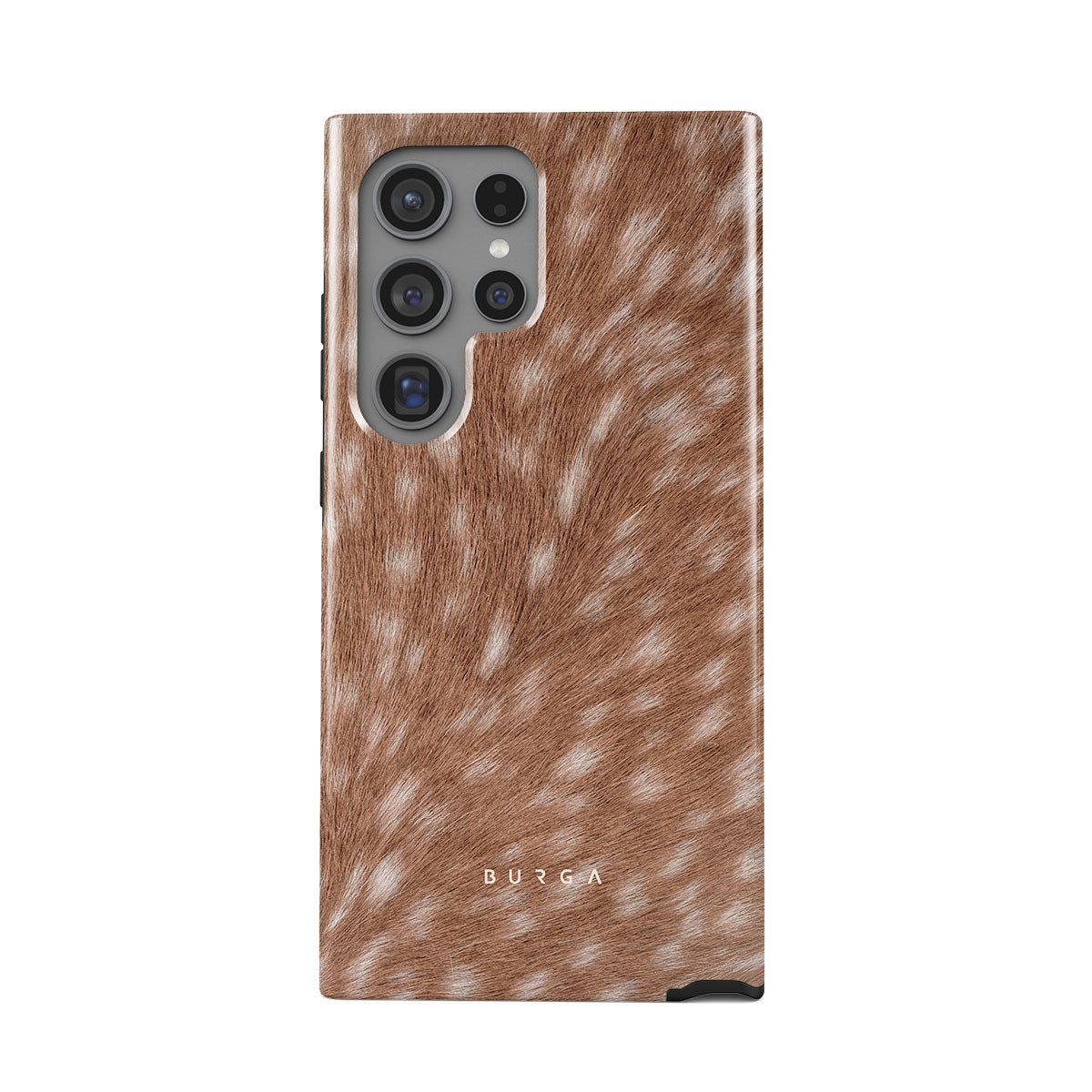 Kenmerken van dit design: bontachtig patroon, aardetinten, natuurlijk bontpatroon, rustiek patroon, dierenprint, landelijke stijl, hert, hinde, kalf.