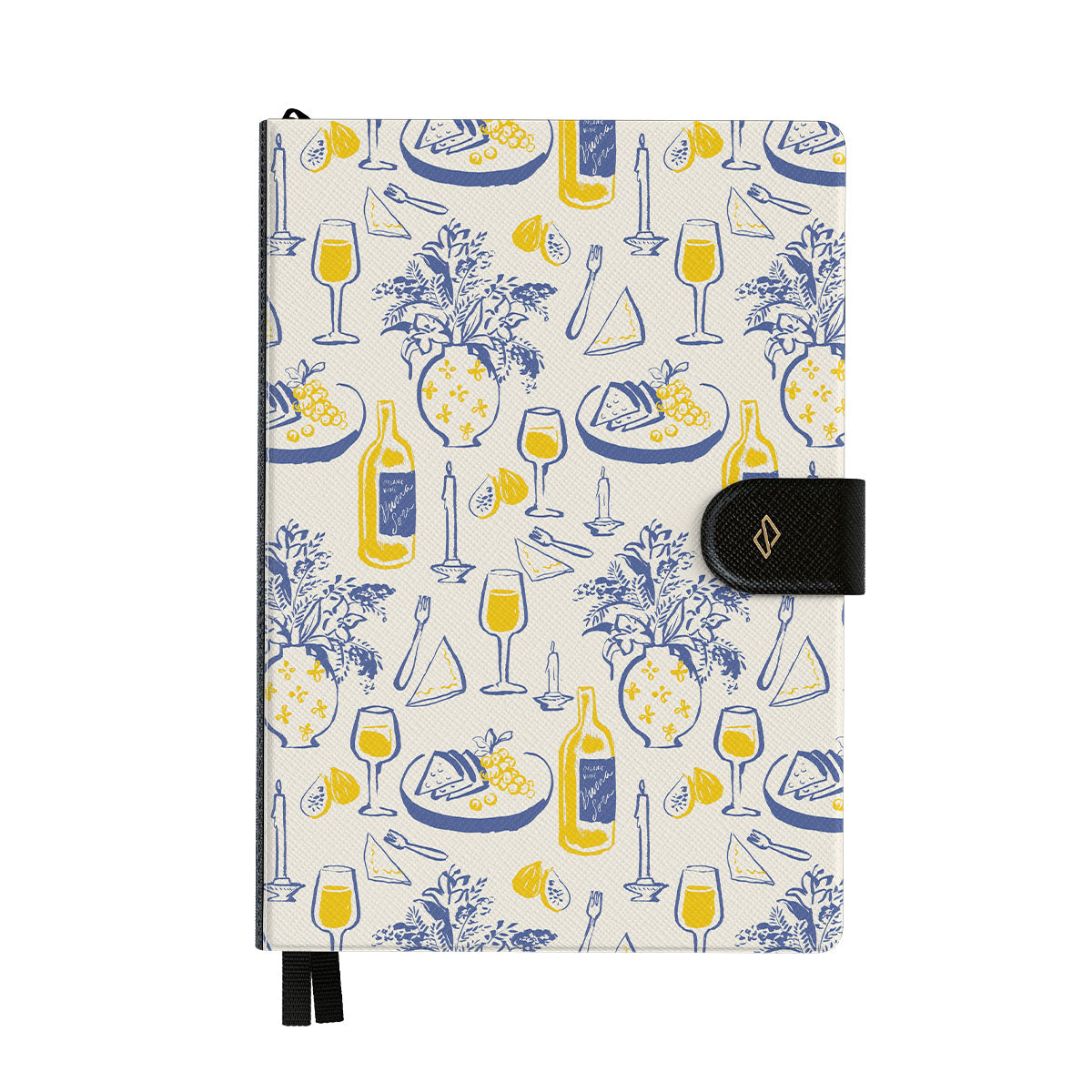 Uitgevoerd in strak veganistisch saffiano leer en vastgezet met een stijlvolle magnetische sluiting, is het stevig genoeg om koffievlekken en kleine ongelukjes te weerstaan.