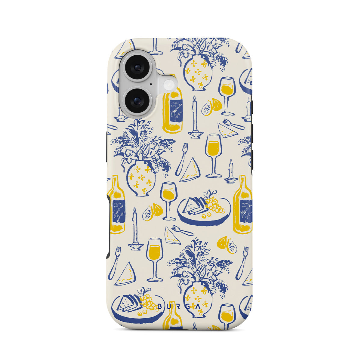 Kenmerken van dit design: wijnflessen, bloemen, kaasplank, kaarsen, bestek, limonade