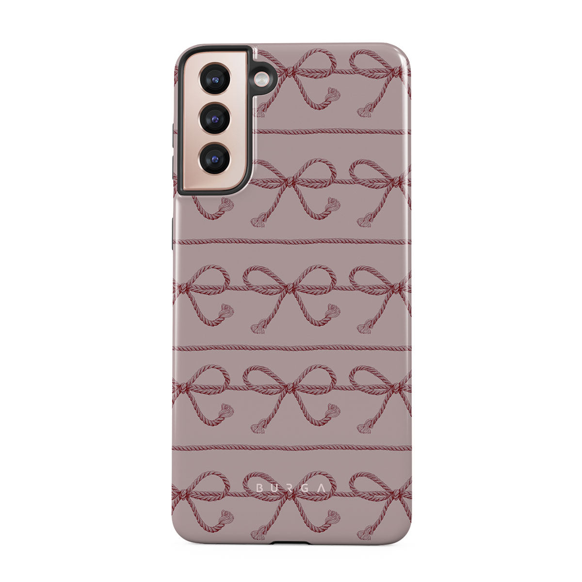 Kenmerken van dit design: roze strikken, roze achtergrond, touwen, speels patroon