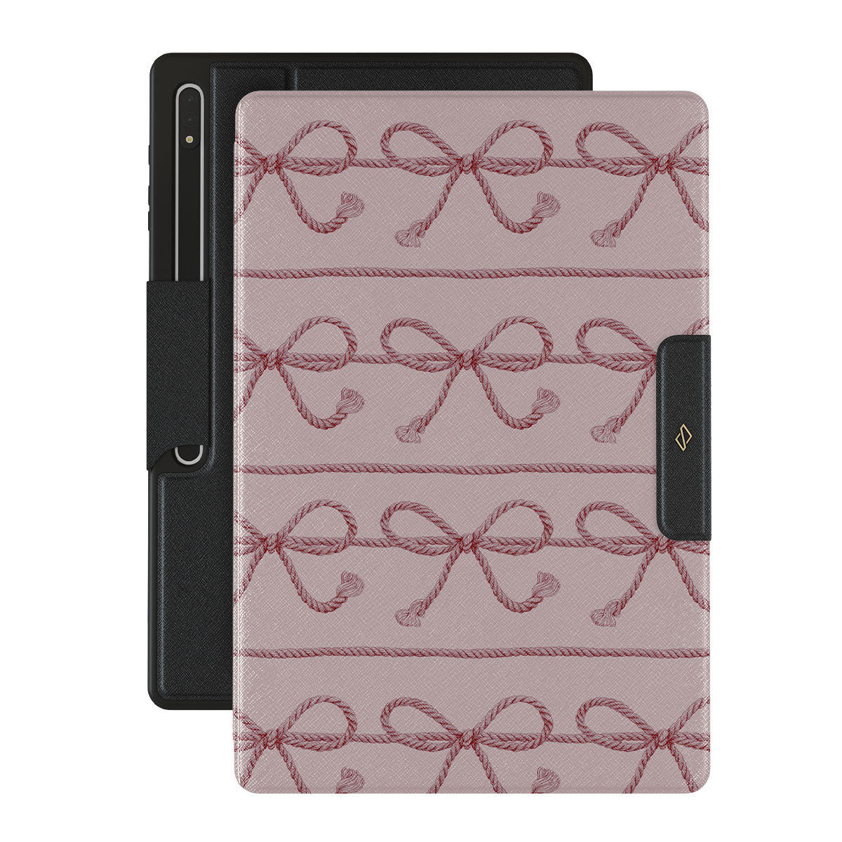 Kenmerken van dit design: roze strikken, roze achtergrond, touwen, speels patroon