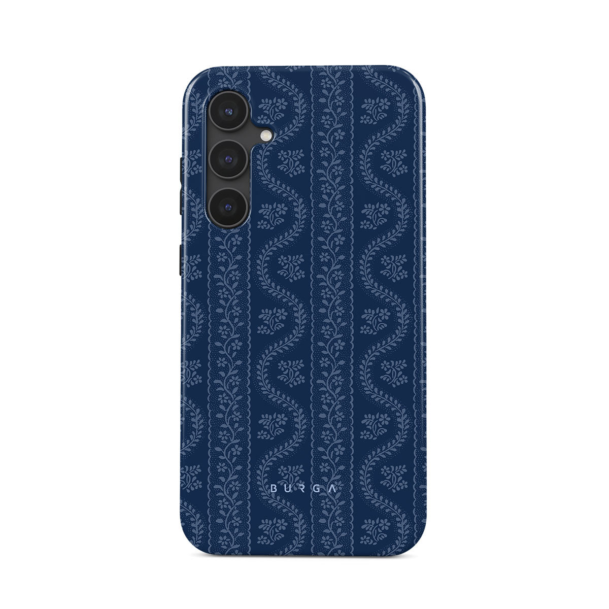 Kenmerken van dit design: paisley, geïnspireerd op denim, vintage, klassiek, fijnmazige patronen, blauwtinten