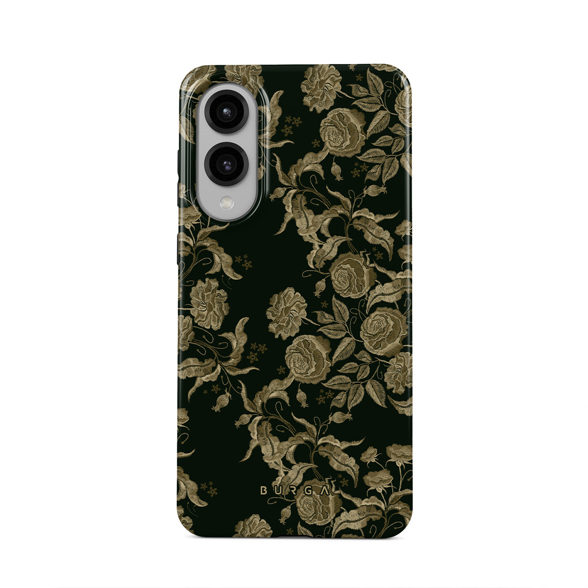 vintage rozen, gouden gebladerte, diepgroene tinten.
