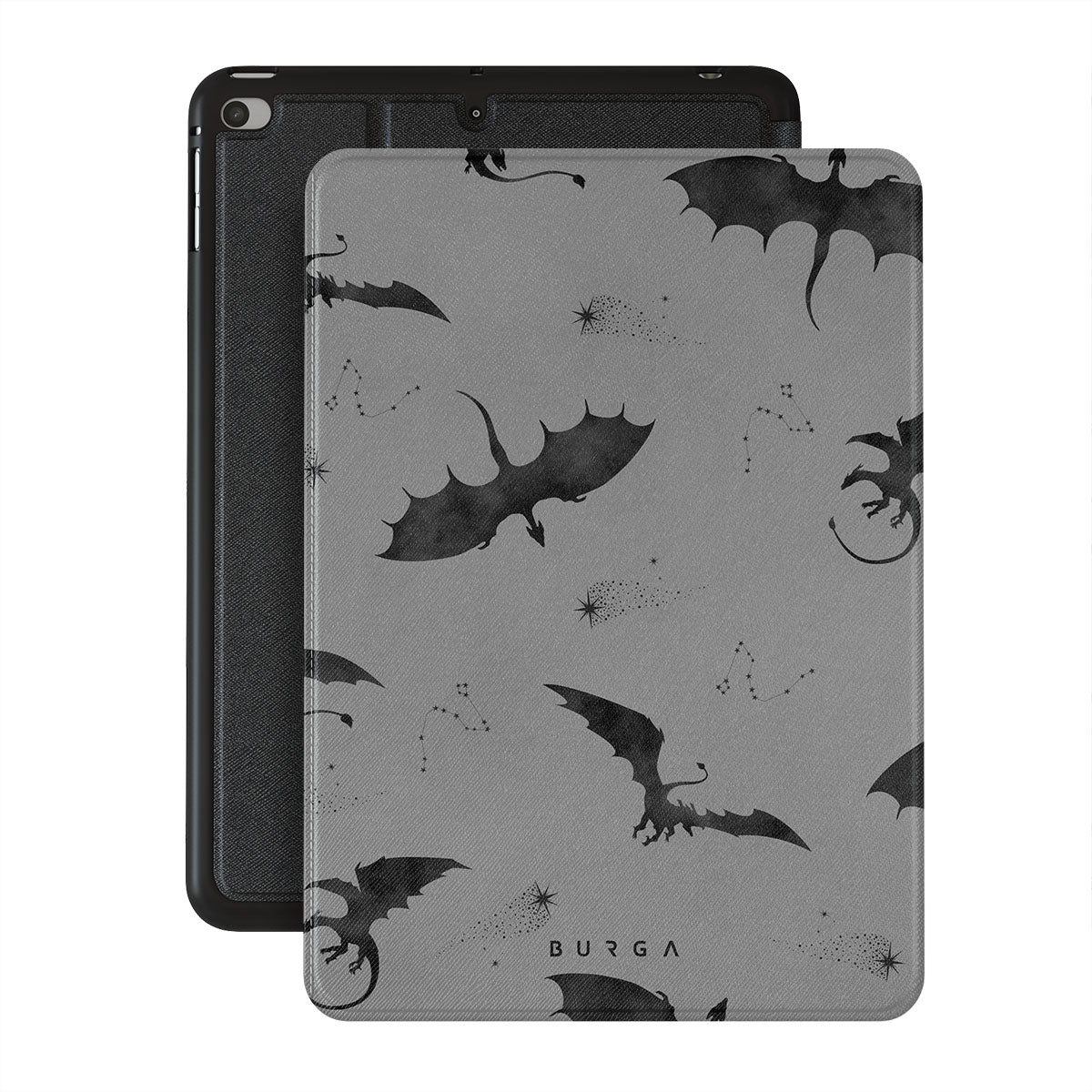Kenmerken van dit design: vleermuizen, draken, grijze lucht, nachtelijke luchten, schaduwrijke wezens.