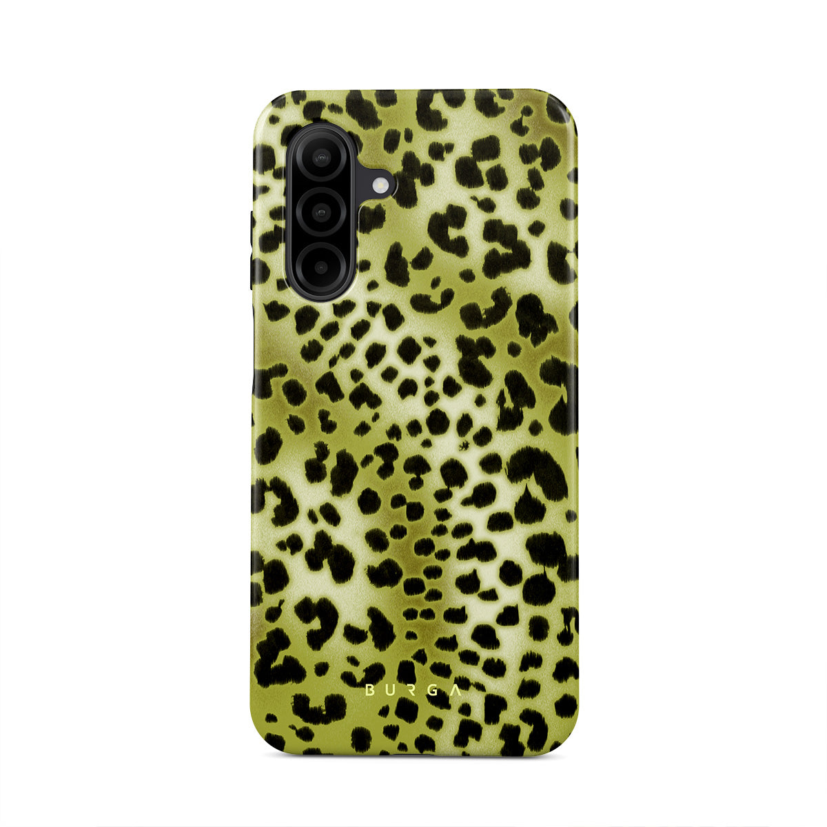 Kenmerken van dit design: luipaardprint, vlekken, olijfgroen, dierenprint.