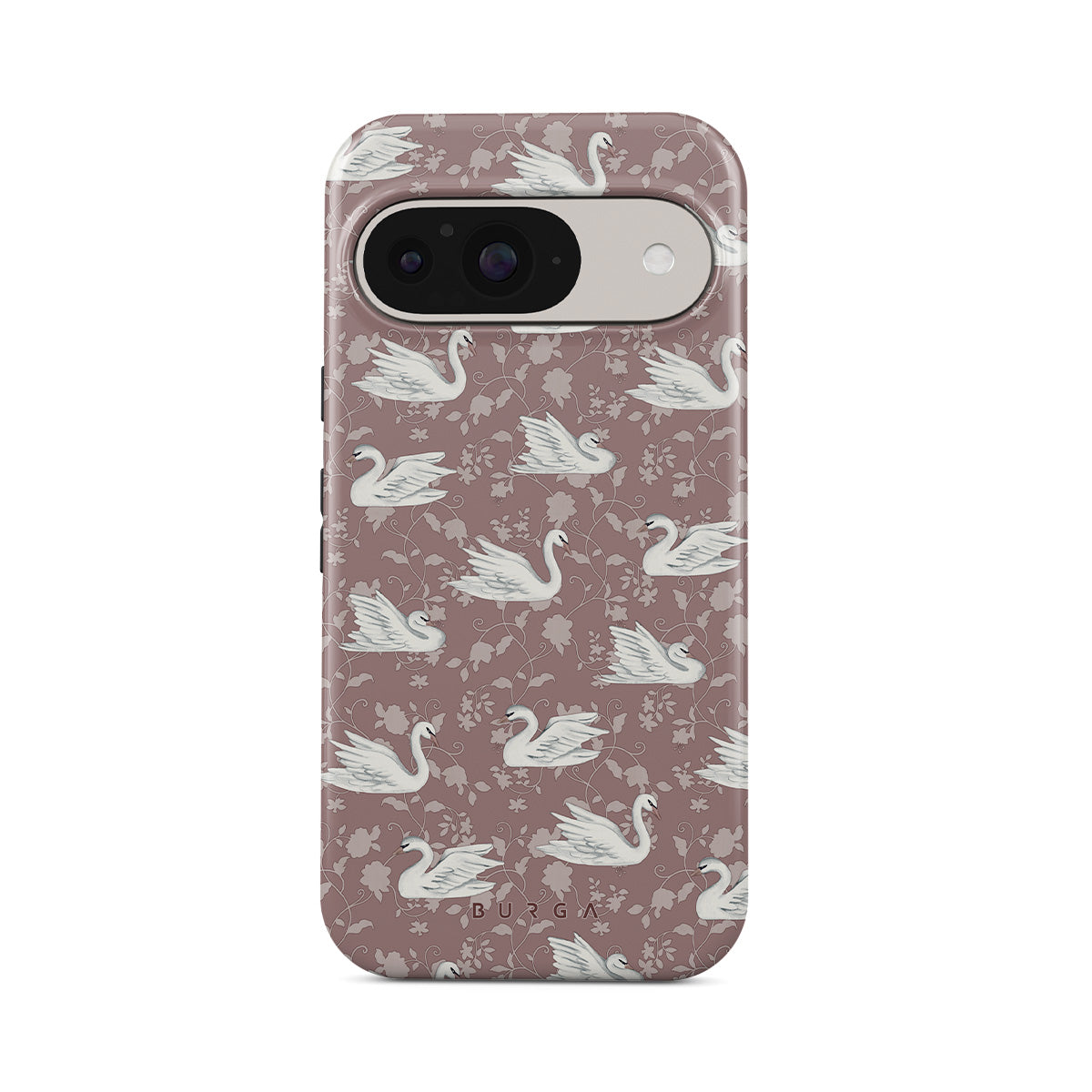 Kenmerken van dit design: zwanen, zachtroze achtergrond, vintage patroon